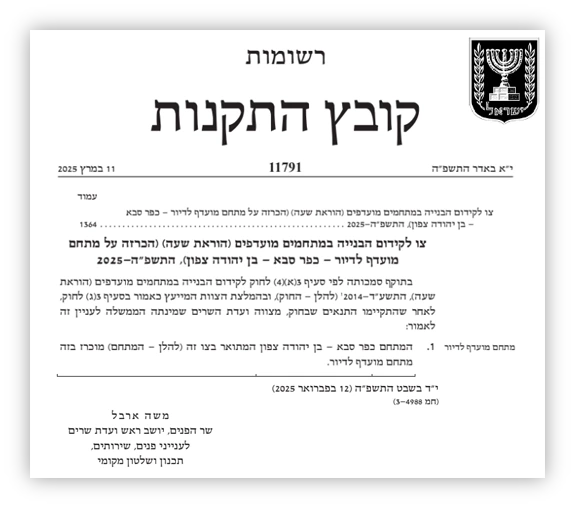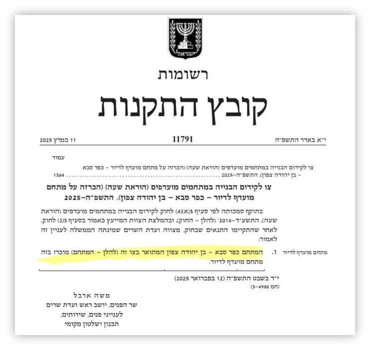 הועדה למתמחים מועדפים לדיור הוקמה ע"י הממשלה כדי להאיץ תוכניות בנייה גדולות למגורים. זוהי ועדה אחת שמחליפה את כל הועדות שקרקע צריכה לעבור כדי לקבל. אישור, ולכן היום זאת הדרך המהירה ביותר לאישור תוכניות. תוכנית "כפר סבא צפון" הוכרזה בותמ"ל ונמצאת לקראת הפקדה.